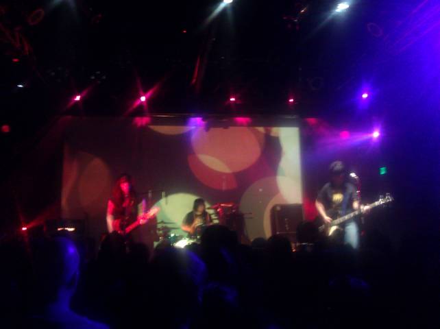 To be honest, I had pretty low expectations coming into Echoplex to see Girl in a Coma, whose name is a nod to The Smiths’ most notorious song. I mean it’s another punk rock show. Years of experiences have taught me that I typically get bored halfway into the show and I’d ask myself “Is it wrong that I kinda wanna sit in my car and listen to the artist album rather than standing here?” Last night, that wasn’t the case! Despite the less than ideal sound system and overly dimmed lightning, Girl in a Coma played a stimulating brand of throaty, full-blasted southwestern rock, augmented considerably by Nina’s snarling and passionate vocals. Her vocal — a raspy, ferocious, deep growl — is definitely captivating (thought I was hearing the reincarnation of Janis Joplin here). Yeah, I’d have to say that Nina is the crowd magnet. Not only does she possess a tremendous amount of charisma, but also she knows how to cut loose and engage with the crowd (there were lots of “I love Nina” chants from the girl crowd…these girls would have been content to watch her chew gum for 2 hours). She’s very carefree and not afraid to reveal her inner geek: Her obsession for all things pertaining to Alice in Wonderland & her admiration for Ringo Star.